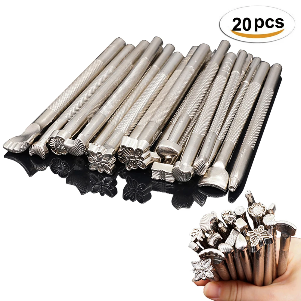 20 шт./лот DIY искусства кожевенного Седло тиснения Резьба Набор инструментов для Leathercraft рабочих ручной работы из воловьей кожи инструменты д...