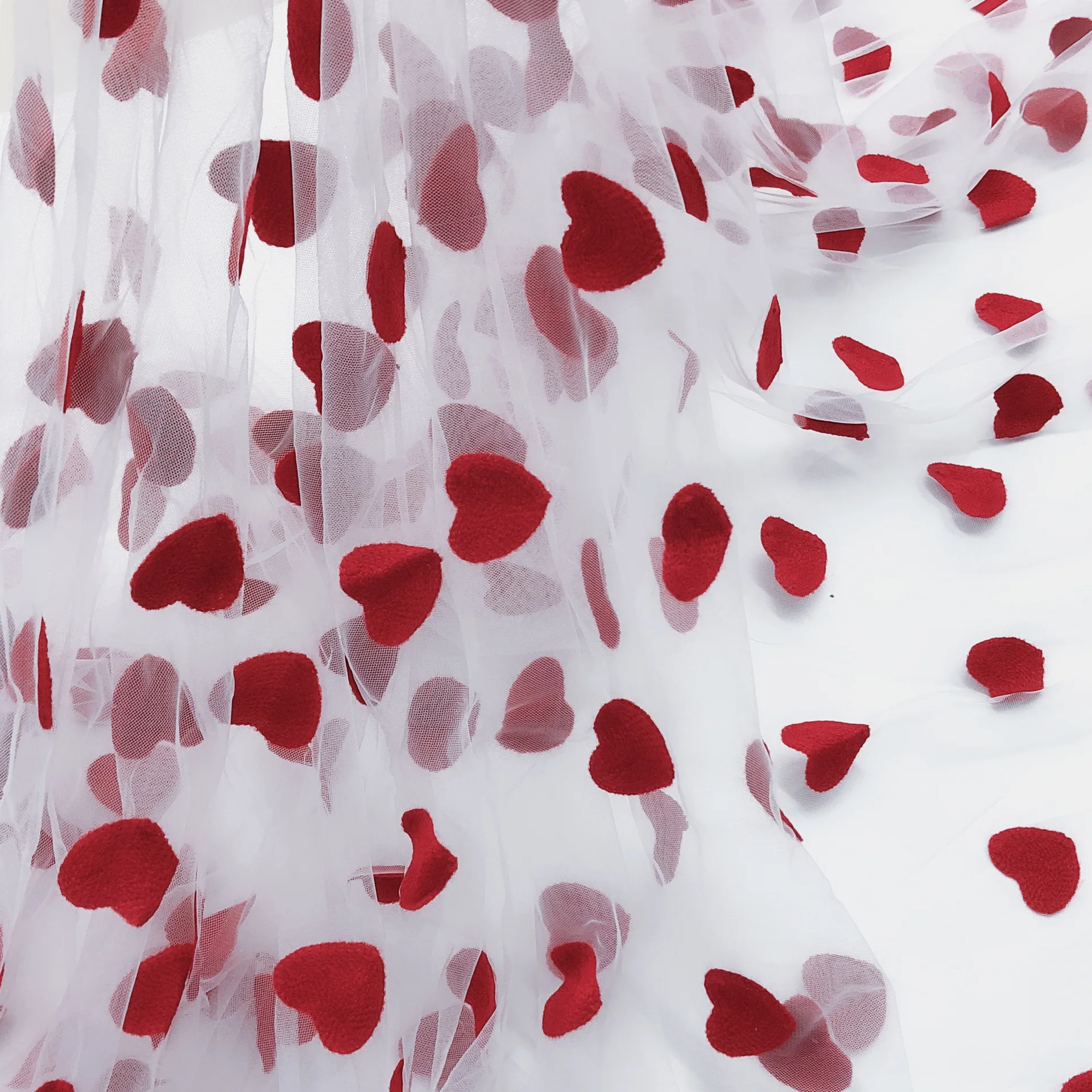 2019 Новый INS Горячая Красное сердце вышивка кружева ткань водорастворимые сетки ткань дизайнер платье своими руками сеточная ткань Tissu 90x130 см