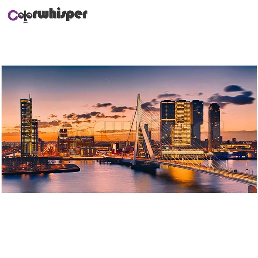 Алмазная картина Полная площадь/круглая дрель Роттердамский мост вид ночного города 5D алмазная вышивка крестиком Pic Z455