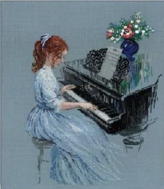 Выше хлопок красивый Счетный набор вышивки крестом Adagio Pianist девушка играть с фортепиано