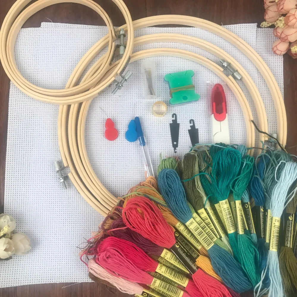 5 шт. Bamboo Вышивка крестом Вышивка Обручи 50 шт. нитки ножницы Иглы Швейные аксессуары для Для женщин вышивка Starter Kit