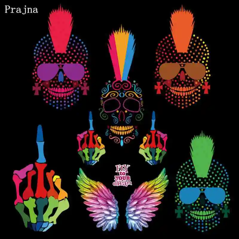 Prajna цветные виниловые термонаклейки с изображением черепа, утюга, термонаклейки для глажки одежды, футболки, самодельные наклейки