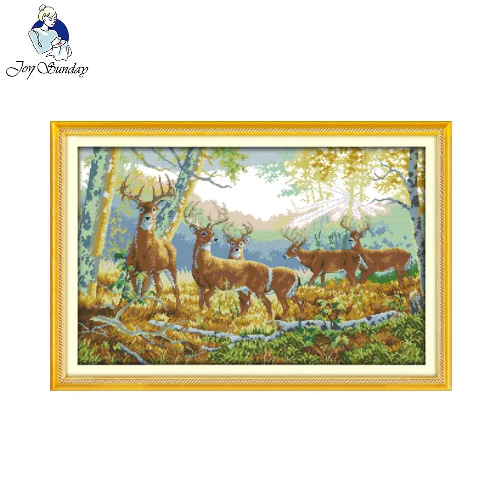 Набор для вышивки крестиком Joy Sunday, набор для начинающих с принтом в виде пятых оленей в лесу, легко и быстро