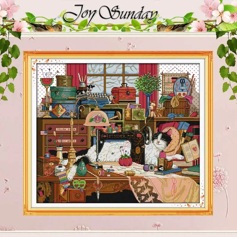 Кошка и швейная машина Счетный вышивки крестом 11CT 14CT набор крестиков оптом китайские наборы вышивки крестиком вышивка рукоделие