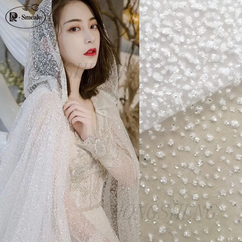 Новый европейский плотная кружевная ткань платье сетка пайетки вышитые ткани одежда аксессуары ширина 130 см RS2134