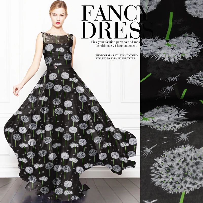 1 метр, шифоновая ткань с принтом для шитья, 6 мм, ткань из чистого шелка, одежда, ткань Одуванчик, текстиль tissu, сделай сам, для платья, юбки