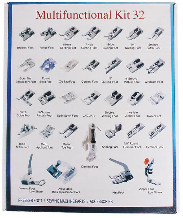 32 шт./компл. Швейные машины лапки для Brother Singer Janome Швейные аксессуары для пришивания шнуров плетение канавки Pintuck для ног комплект