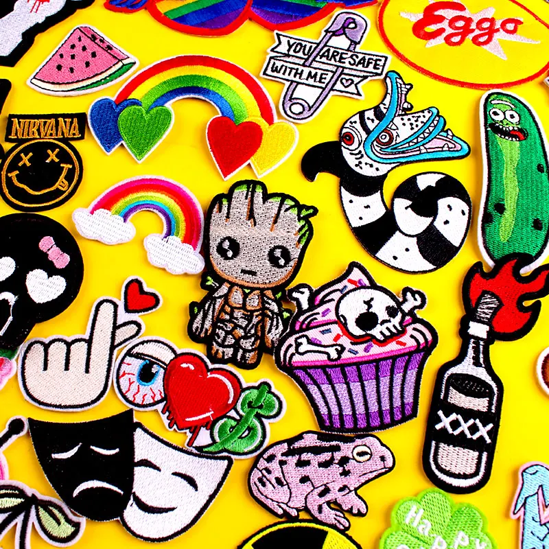 Милый мультфильм патч вышитые патчи для одежды Радуга Череп нашивка в стиле панк утюжок на одежде полоски аппликация наклейки
