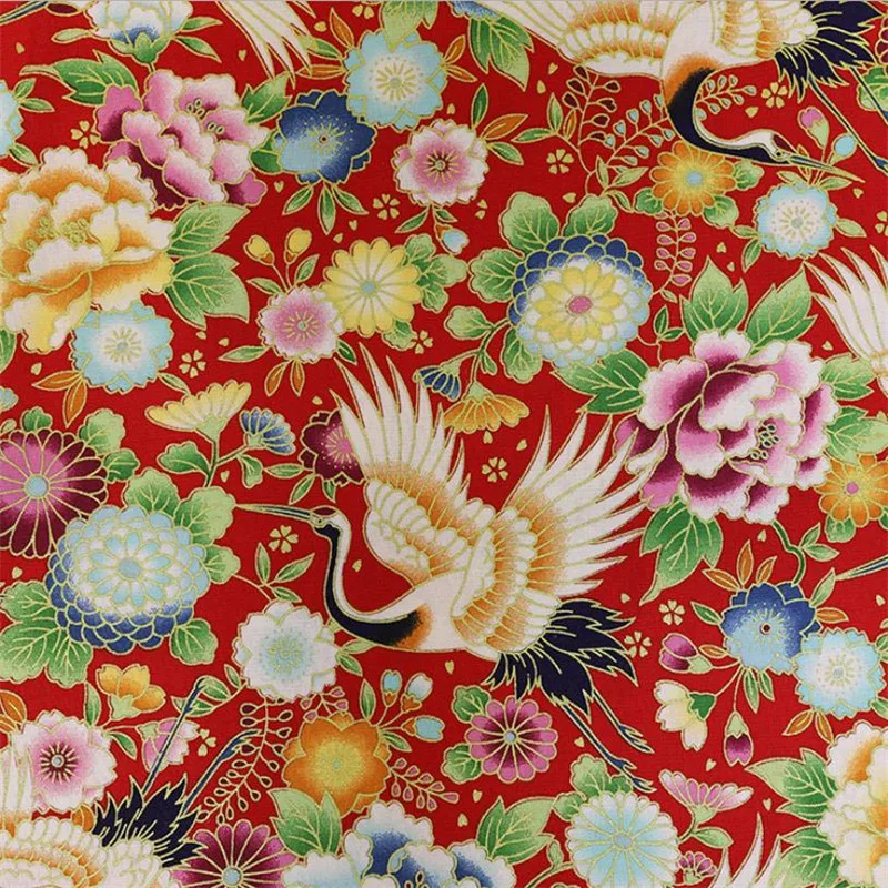 CF672 японский стиль журавль и Пион печатных хлопчатобумажная ткань для кимоно скатерти двери шторы DIY ткани домашний текстиль