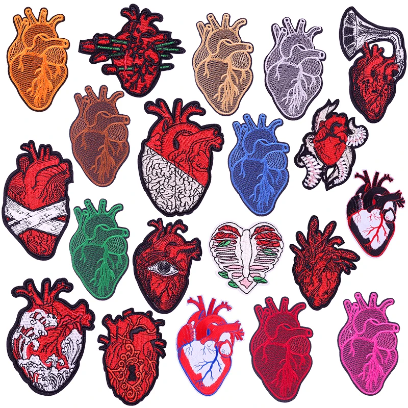 Панковские сердечки, железные нашивки для одежды, нашивки в полоску с вышитыми сердечками для одежды, наклейки, наклейки на одежду, аппликация, Декор