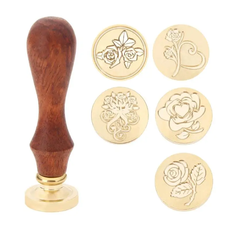 Роза цветок деревянная ручка античный металлический уплотнительный воск штампы древний печать штамп
