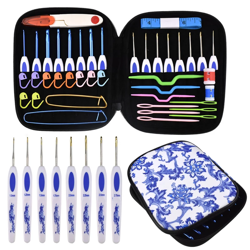 Классический стиль, набор крючков для вязания крючком 1,0-6,0 мм, алюминиевые спицы для вязания, инструменты для плетения, аксессуары для шитья, чехол