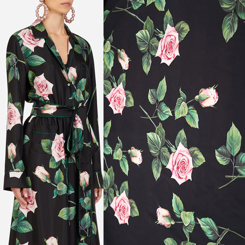 100x148cm Imitate Silk Satin Digital Printing Rose Clothing Handmade Cloth For Woman Dress Blouse Pajamas Sleepwear DIY Sewing