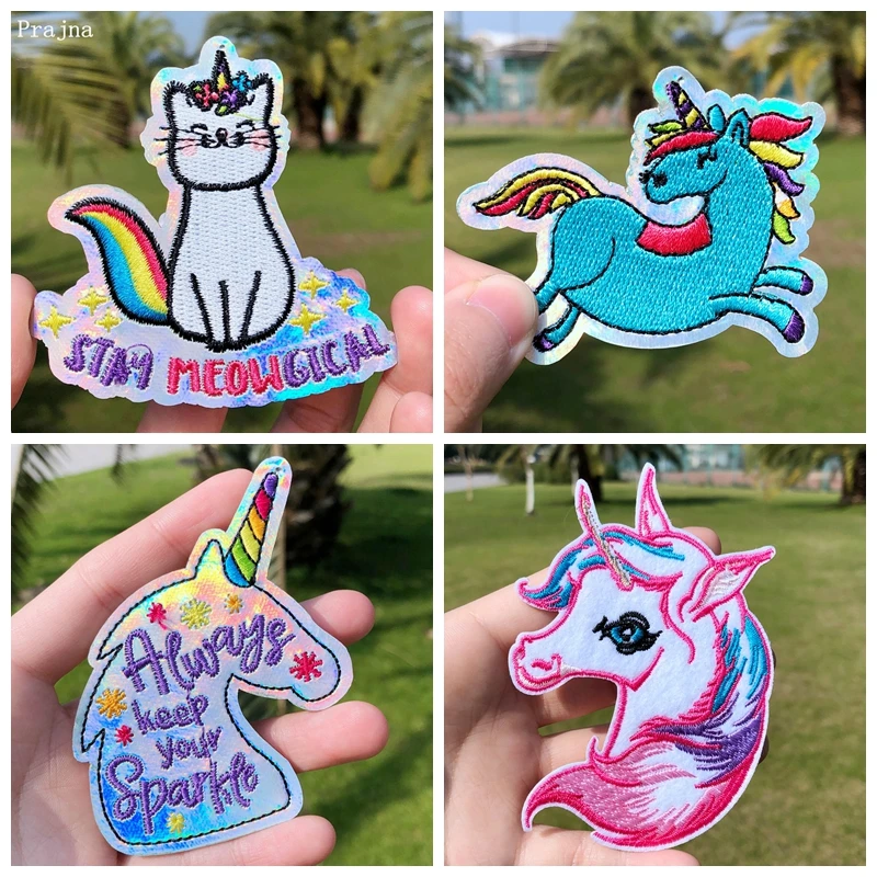 Prajna мультфильм Единорог патч, вышитые патчи для одежды железные нашивки на одежду полосы на детской куртке значки аппликации