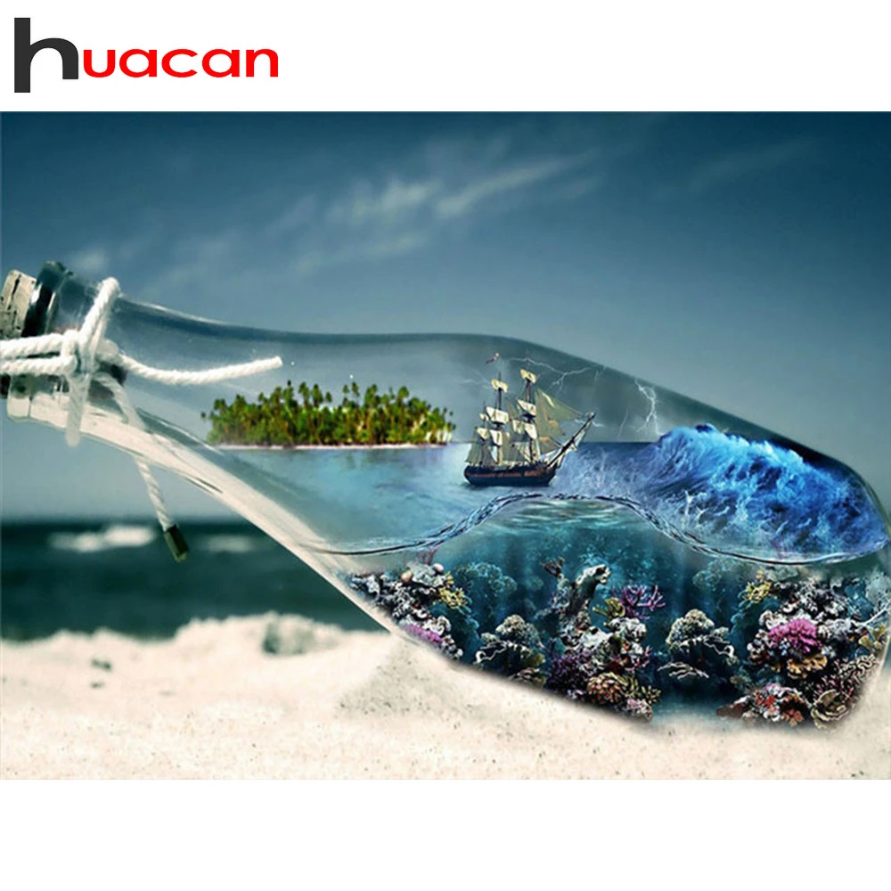 Huacan Алмазная вышивка полный квадратный бутылка Алмазная Вышивка Полный дисплей вышивка крестиком Бриллиантовая мозаика пейзаж набор пода...