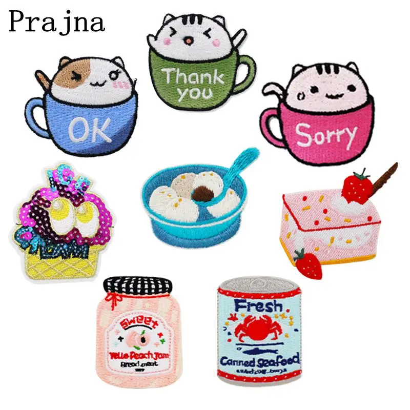Праджня мультфильм кошки железа на патчи карман кошка кролик вышитые патч улыбка наклейки с животными Одежда для малышей DIY наклейки логоти...