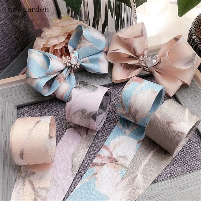 Kewgarden 30 мм 3 см Высокое качество с цветочным принтом атласные ленты вручную изготовленная лента DIY бант аксессуары для волос тесьма 10 метров