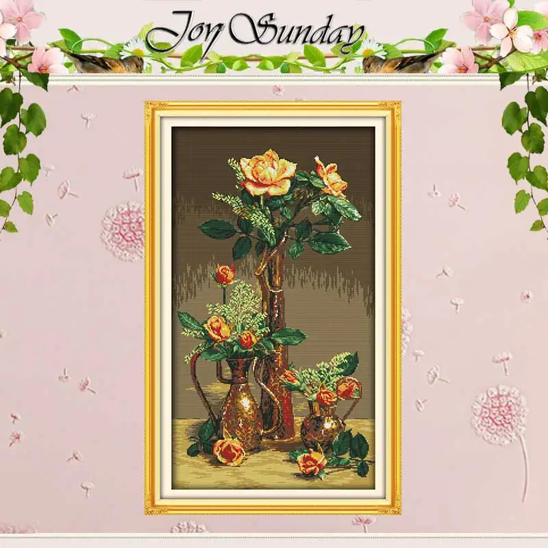 Золотые розы узоры счетная вышивка крестиком 11CT 14CT Набор для вышивки крестом оптовая продажа цветок вышивка крестом Набор для вышивания ру...