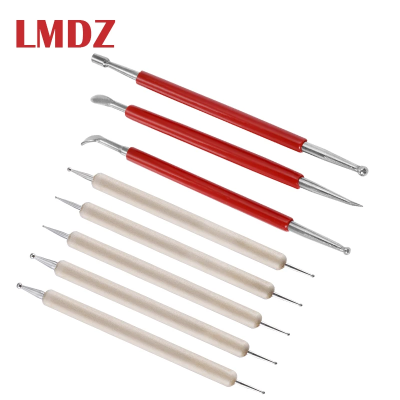 LMDZ 8 шт./компл. инструмент для работы с кожей, инструмент для моделирования, стилус для моделирования, инструмент для резьбы, ложка, шарики, тиснение, резное лезвие, пресс