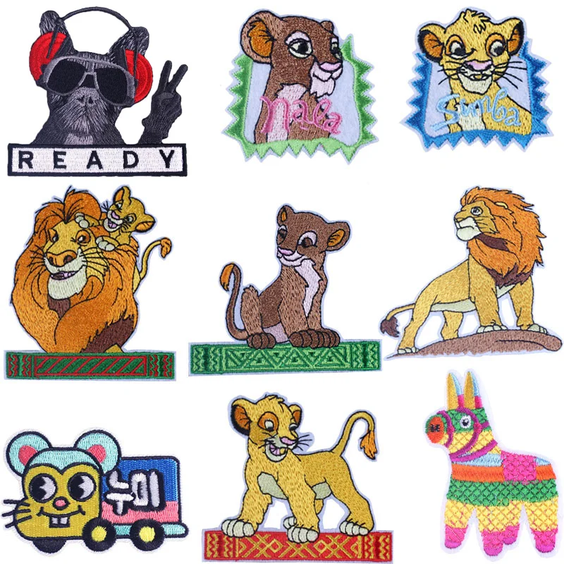 Сделай Сам, петля-крючок, нашивка, ПРИШИТАЯ/железная нашивка на одежду, нашивка в полоску с героями мультфильмов/животными, Король Лев, вышитые нашивки для одежды
