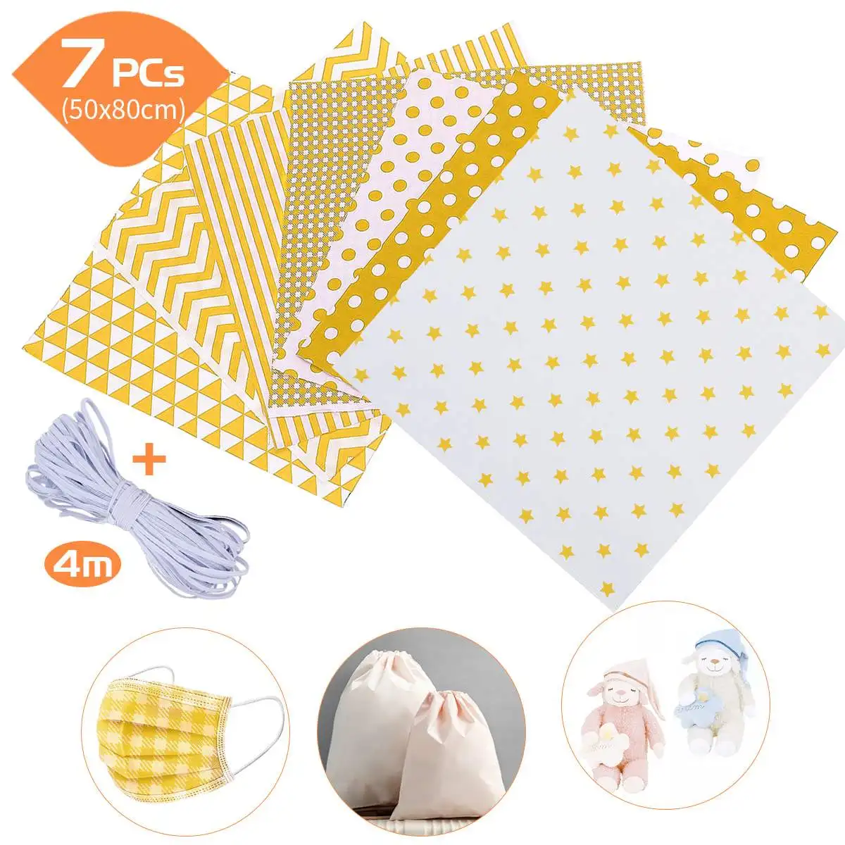 7 шт., 50x80 см, хлопковая ткань с принтом, ткань для шитья, стеганые ткани для лоскутного шитья, ручная работа, маска, материал + 4 м веревка