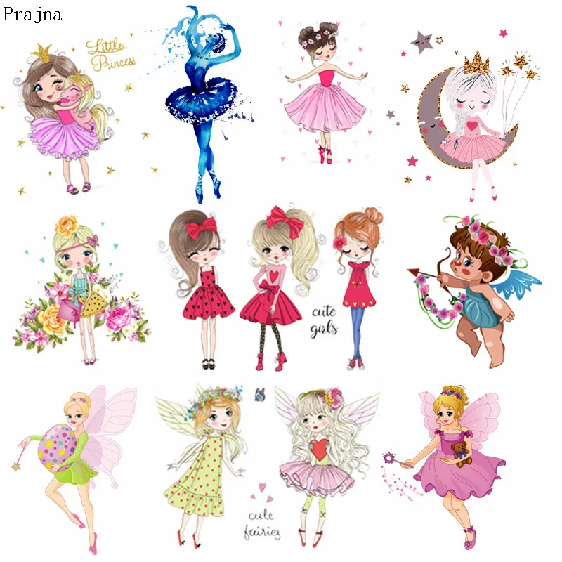 Prajna мультяшная девочка, пластырь с утюгом для одежды в полоску, термопереводные виниловые термонаклейки, железная аппликация на одежду, сде...