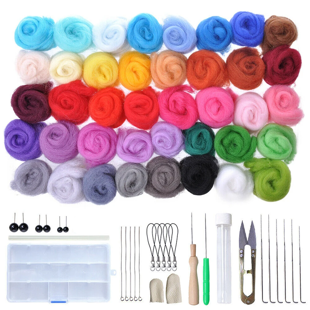 40 цветов Шерсть Войлок + Войлок diy пакет спицы для поделок Набор инструментов Набор для игл валяния спиннинг плетение куклы