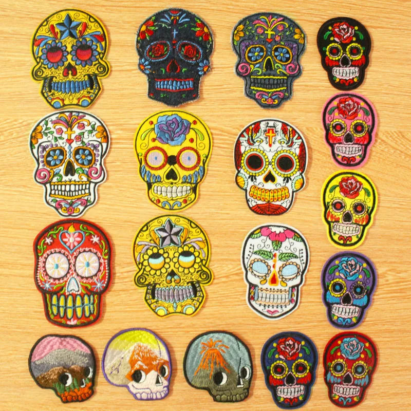 Нашивка на липучке с черепом, нашивка с вышивкой, железные нашивки на одежду, вышитые нашивки на одежду, набор сахарных черепов в полоску