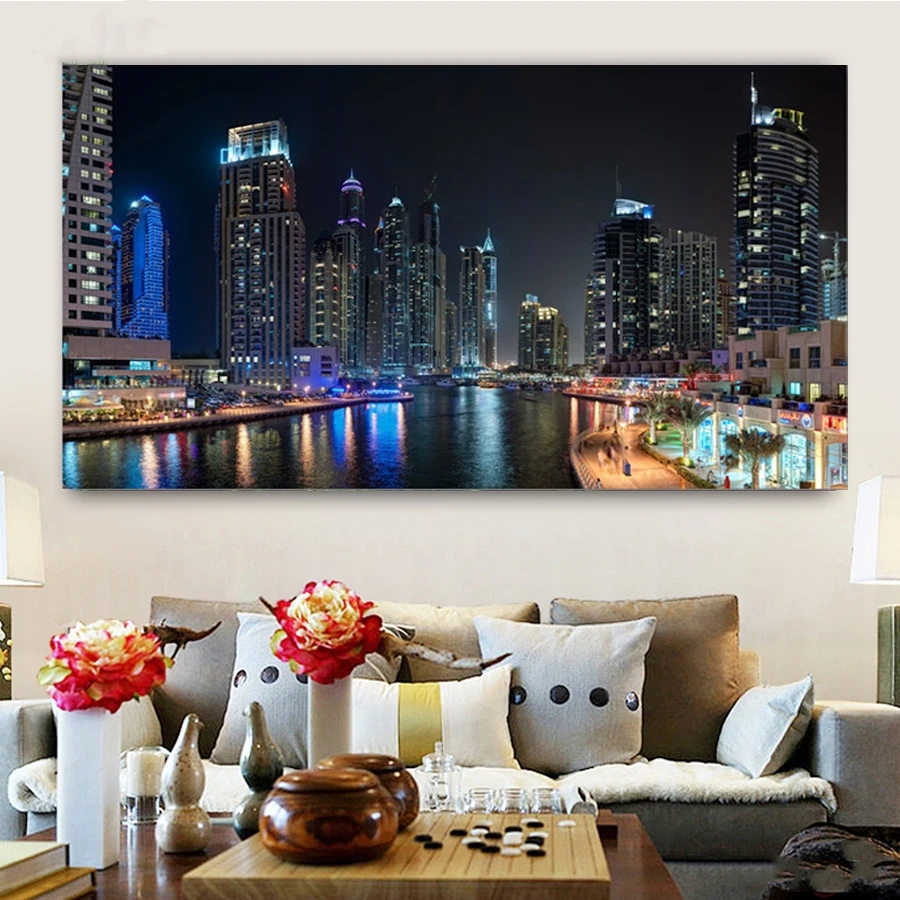 Большая Алмазная картина «сделай сам», современные городские здания, ночная сцена, вышивка крестиком, 5d квадратная круглая Алмазная вышивк...