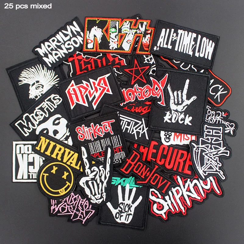 25 шт. набор, смешанные DIY нашивки хиппи рок-группы, значки, вышитые Гладильные полосы на одежде, DIY Аппликации, наклейки