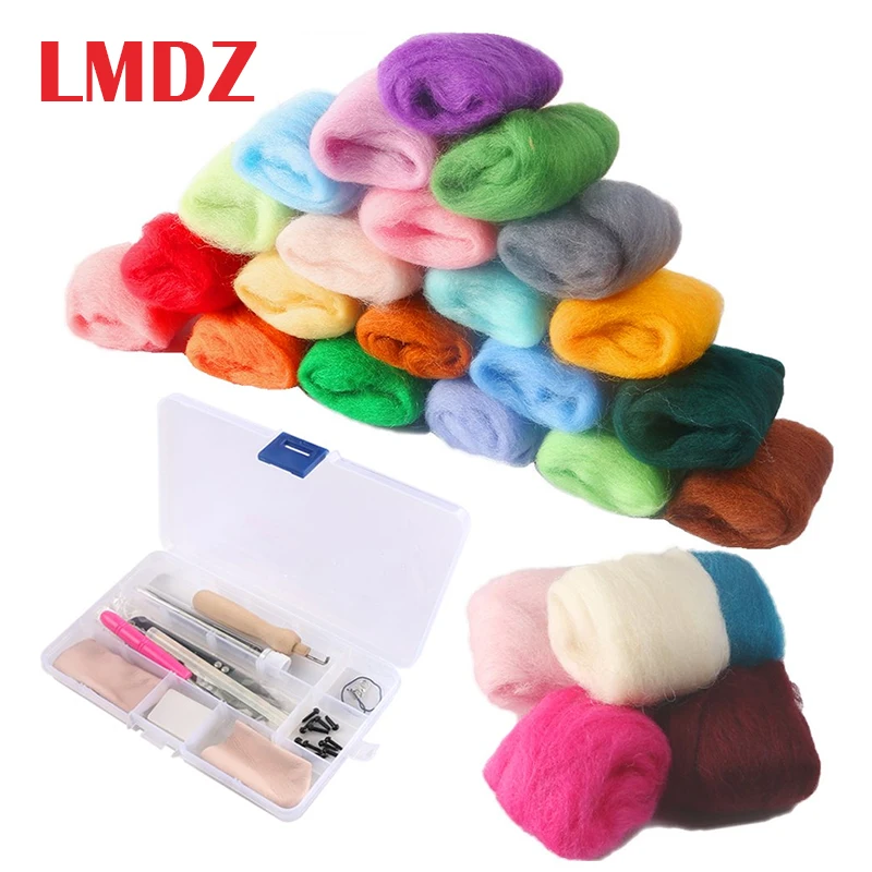LMDZ игла для валяния стартовый набор войлочные инструменты с 36 цветами ватный Войлок поставки волоконная шерсть пряжа для ручного прядения ...