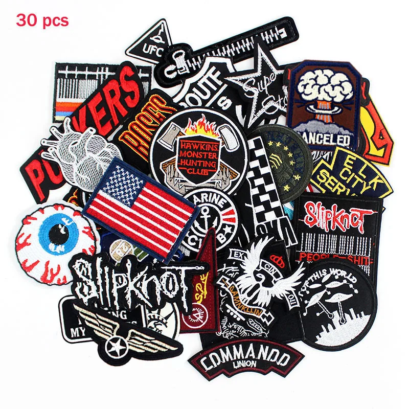 30 шт./лот, модные панковские Значки для мужчин и мальчиков, вышитые железные нашивки для одежды, сделай сам, шитье, ccessory