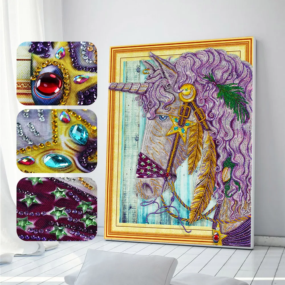 Meian вышивка бисером, животное Единорог 5D DIY особой формы кристаллы дома круглый алмаз живопись частичная nouveaute 2019