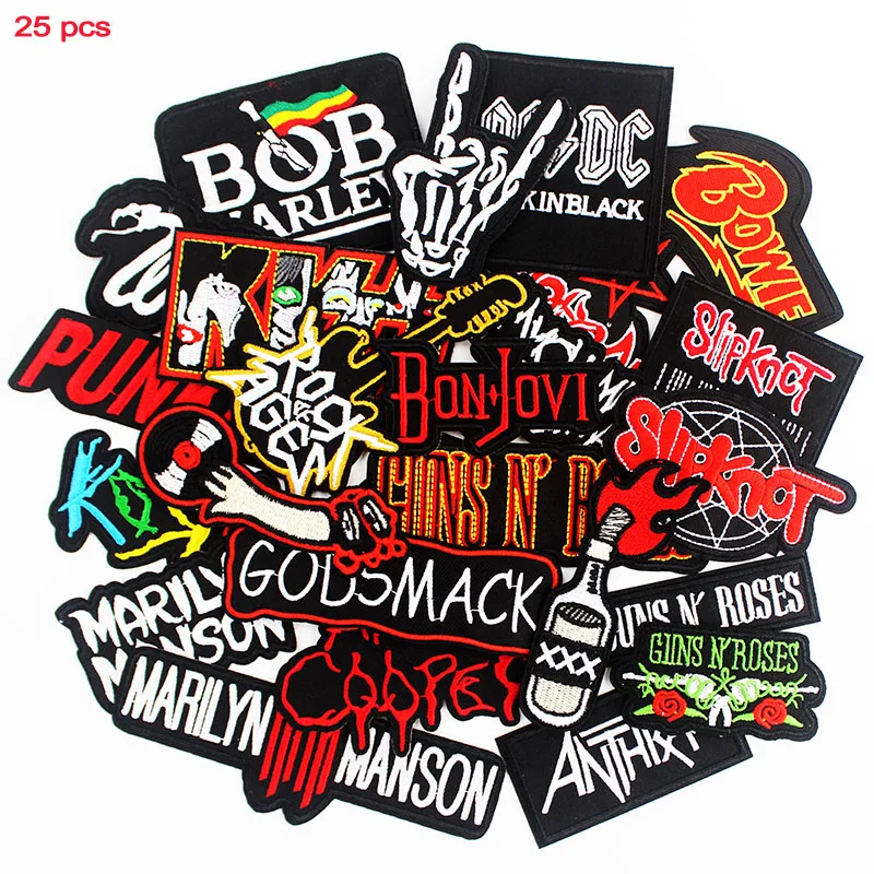 25 шт. металлические нашивки железные на рок-музыку значки наклейки в стиле панк для одежды куртка джинсы Сделай Сам вышитые нашивки