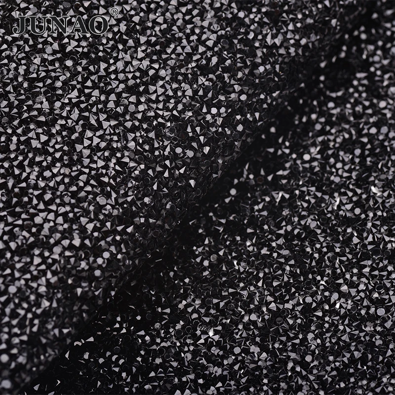 JUNAO 24*40 см самоклеющиеся черный AB Стразы на сетчатой основе лист ткани лента отделкой смолы аппликация из страз для DIY ремесел