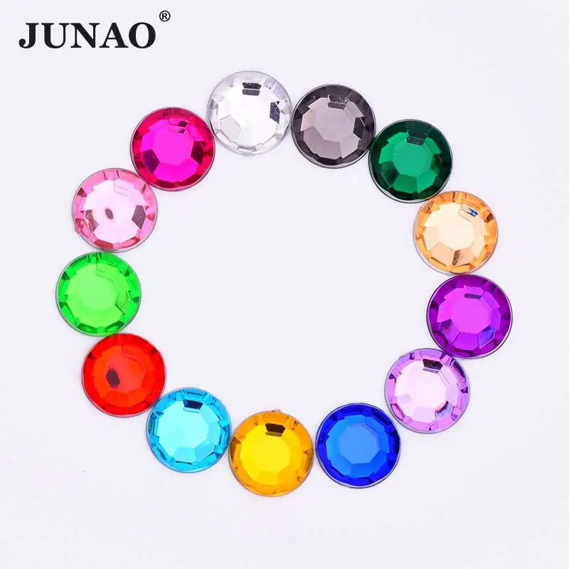 Junao 10 мм смешивания Цвет Круглый Кристалл Rhinestone Flatback Ясно AB страз Бусины клей на кристаллы Камни акриловые камни для одежда