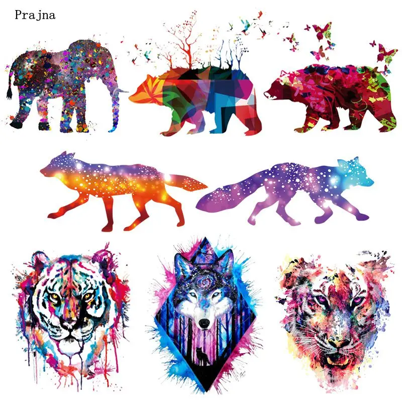 Prajna панк медведь железа на переводах Горячие виниловые тепловые Пластыри для аппликация на одежду DIY красочные тигра теплопередачи наклейки железа