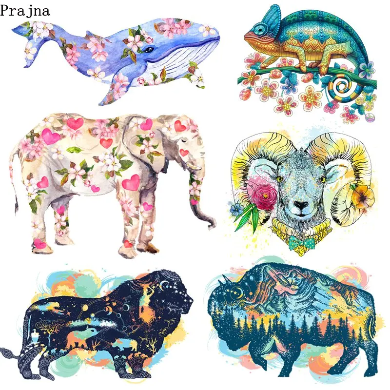 Prajna панк нашивки со слонами животных теплопередача винилового железа на переносках для одежды ящерица Коза стикеры "Лев" патч аппликация