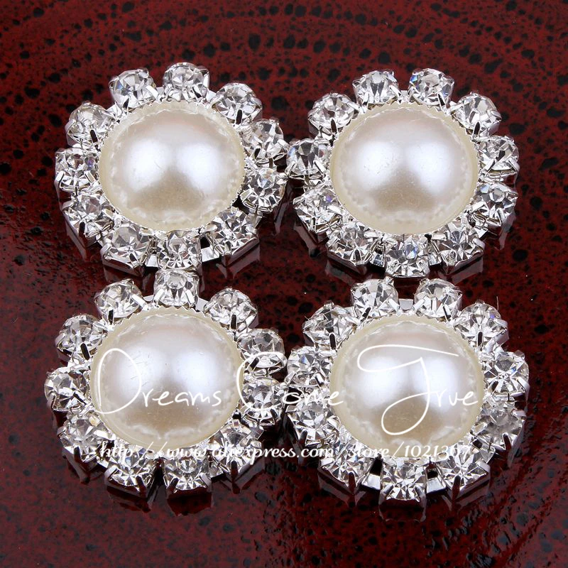 50 шт./лот 20 мм 2 Цвета искусственные милый Половина Перл Пуговицы Цветочный центр + Ясно сплава круглая кнопка горный хрусталь для свадьбы