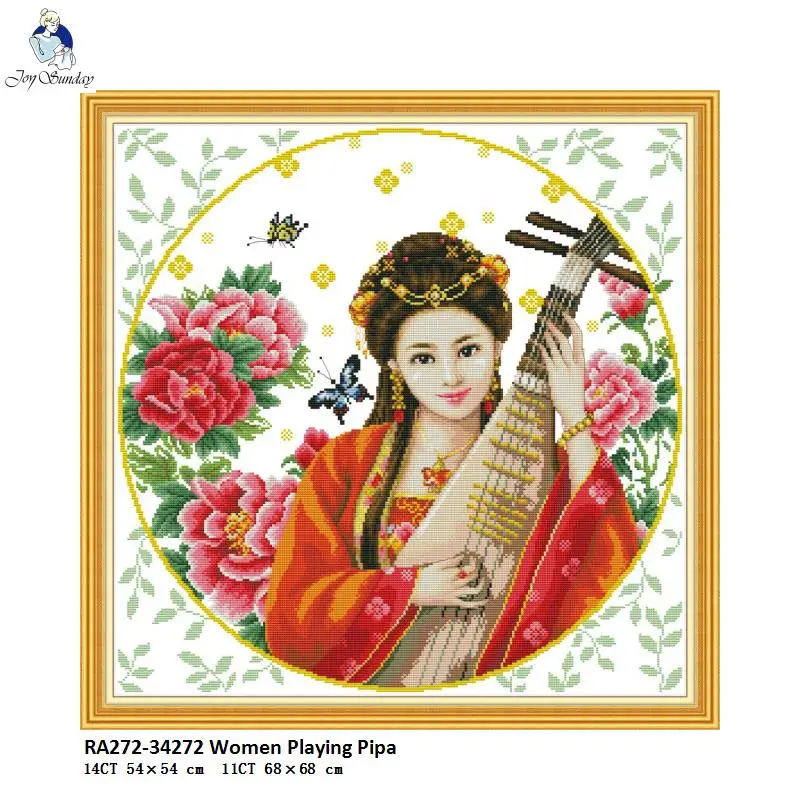 Женский набор для игры в Pipa, наборы для вышивки крестиком 11CT, напечатанная ткань 14CT, холст DMC, счетный крест-Стич, Набор для вышивки нитью