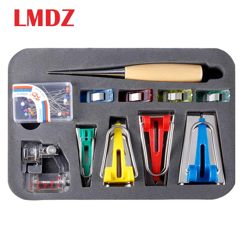 LMDZ ткань для изготовления косой бейки комплект с шило для шитья иглы для нанизывания бусин Регулируемый зажим для бумаг Awl Лапка для швейной...