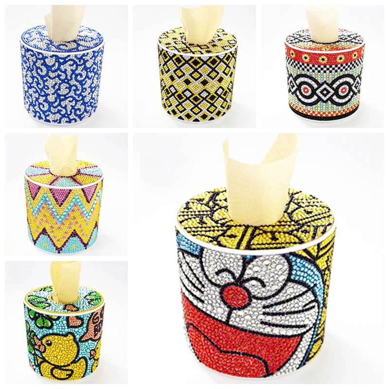 DIY цилиндрическая Алмазная картина коробка для салфеток трехмерная ручная работа художественный косметический диспенсер для салфеток детский мультяшный домашний декор