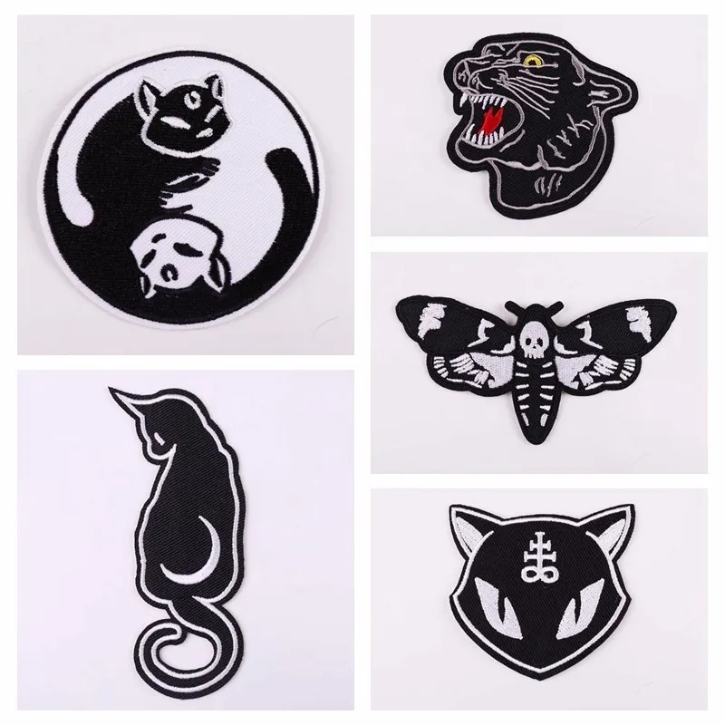 В стиле панк, таичи, кошки, черные кошки, тигр, аппликация, призрак, лицо, моли, патчи, железо, нашивки, шитье, Череп, вышивка, значки