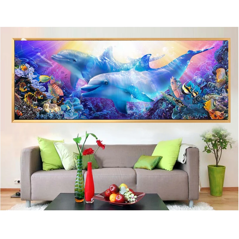Полный квадратный/круглый дрель 5D DIY Алмазная картина "Дельфины и подводный мир" Большой размер вышивка крестиком 5D домашний декор JS5229