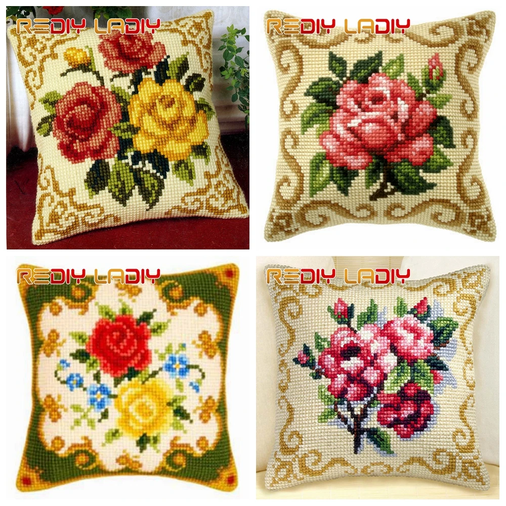 Вышивка крестиком, подушка, букет роз, сделай сам, массивные наборы крестиков, акриловая пряжа, наволочка, домашний декор, диванные подушки, искусство и ремесла