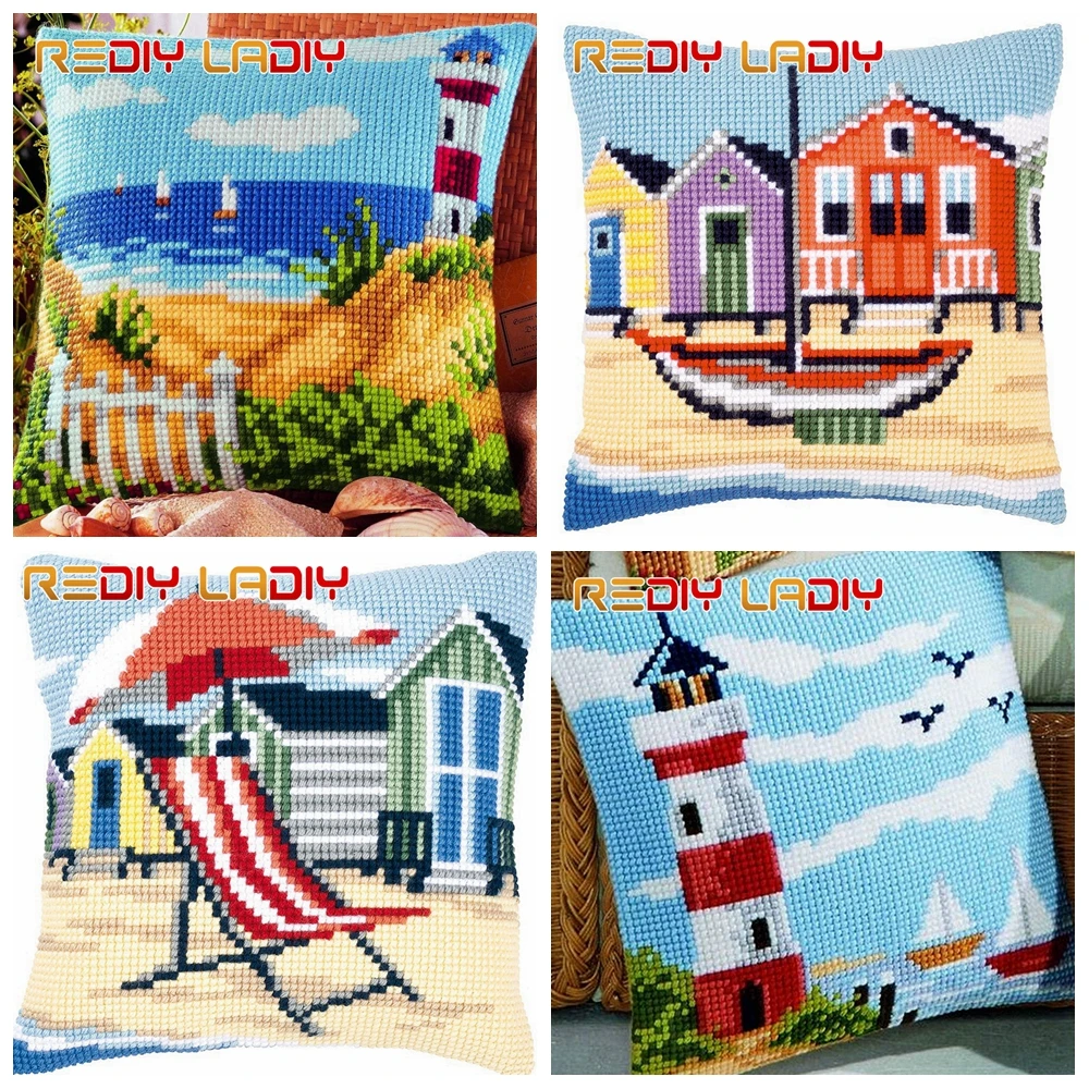 Наволочка для подушки с крестиком на пляжном диване, сделай сам, наборы для вышивки крестиком, 100% акриловая пряжа, наволочка, чехол для хобби и рукоделия
