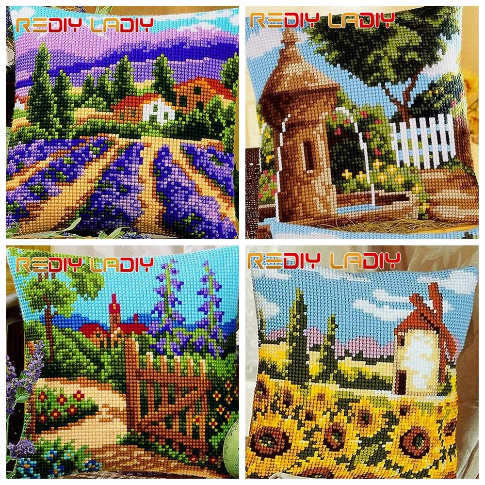 Наволочка для вышивки крестиком, садовая Ландшафтная подушка для дивана, наборы для вышивки крестиком, 100% акриловая пряжа, наволочка для хобби и рукоделия