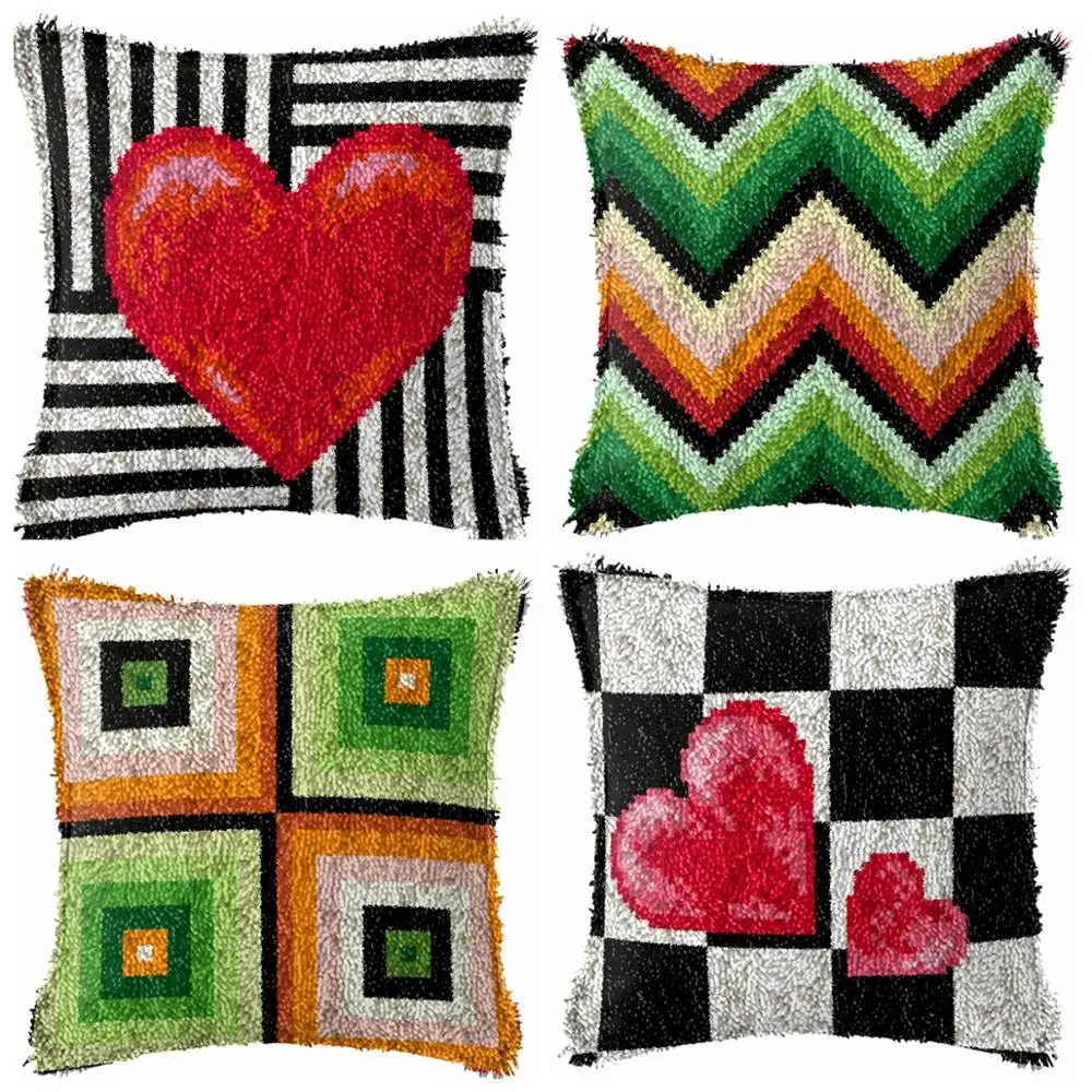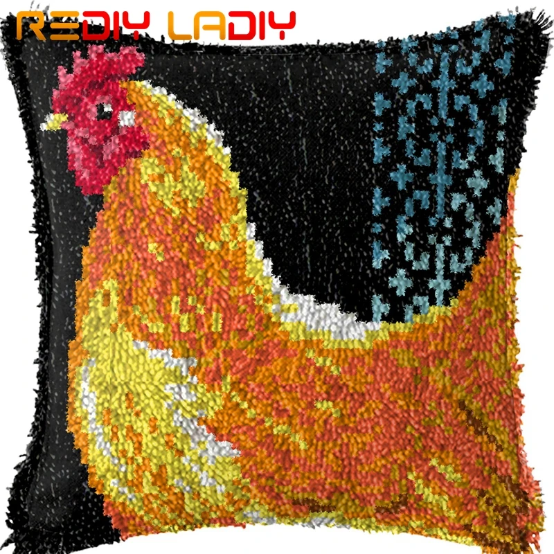 Набор подушек с защелкой и крючками, наволочка с прямым петушком, акриловая подушка для прядения, предварительно напечатанный цветной холс...