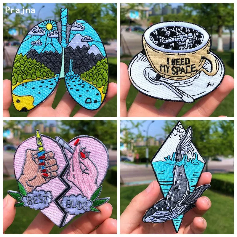 Prajna Whale Lung Forest Исследуйте патч Вышивка Патчи для одежды уличные утюжки на патчи в полоску на одежду DIY аксессуары