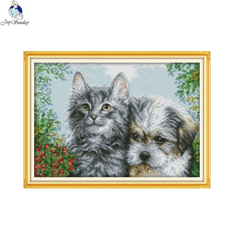 Радость воскресенье котенок и щенок Счетный 11CT набивные ткани 14CT холст DMC DIY ручной работы NKF крестиком Набор для вышивания